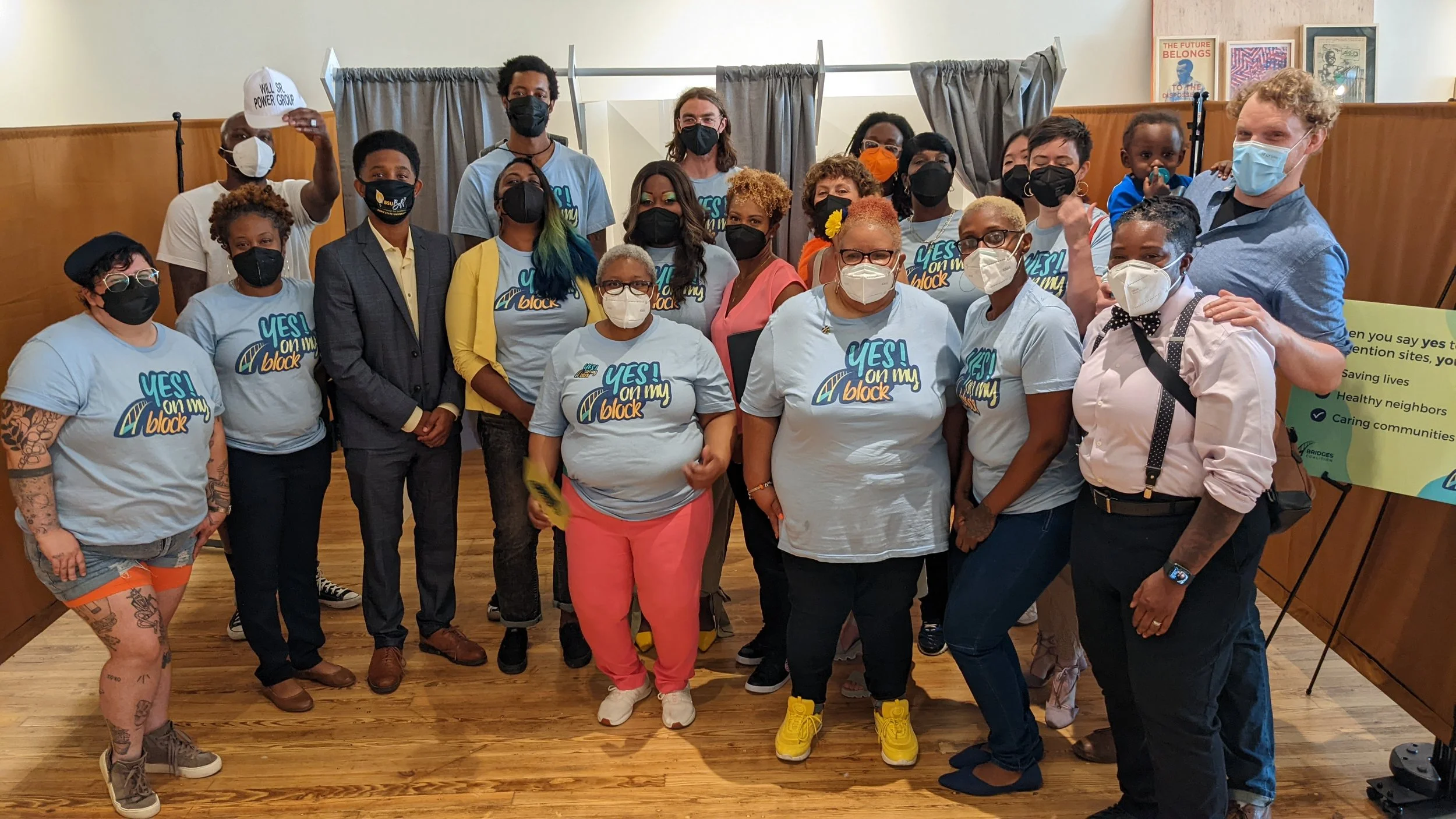 The Summer of 2022 BRIDGES Coalition held a Demonstration Overdose Prevention Site Installation at Nomu Nomu an art collective in Downtown Baltimore. This installation was to show the community what a OPS looks like from the lobby to registration the use room and the hang out space where people can find other resources.